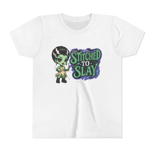Bride of Frankenstein ''Stitched to slay'' Youth Tee, Halloween T-Shirt, Kids Tee, Cute Graphic Shirt, Youth Apparel