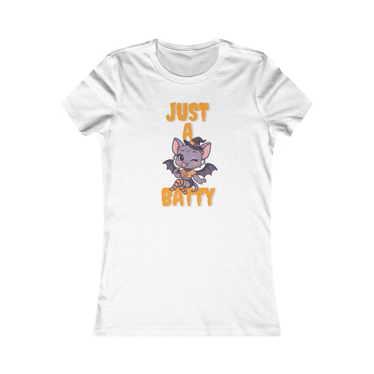 Just A Batty Women's Favorite Tee, Cute Halloween T-Shirt, Casual Graphic Top, Gift for Bat Lovers, Fun Fall Apparel, Spooky Season Shirt