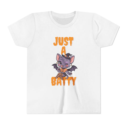 Just a Batty Youth Tee, Halloween T-Shirt, Kids Tee, Cute Bat Graphic Shirt, Youth Apparel